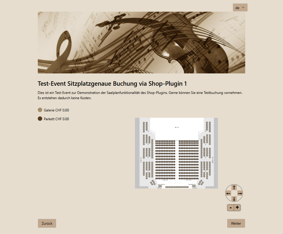 Ab sofort kann das Shop-Plugin auch Saalpläne abbilden. Deine Kundinnen können also nun auch sitzplatzgenaue Events direkt auf deiner Webseite buchen.